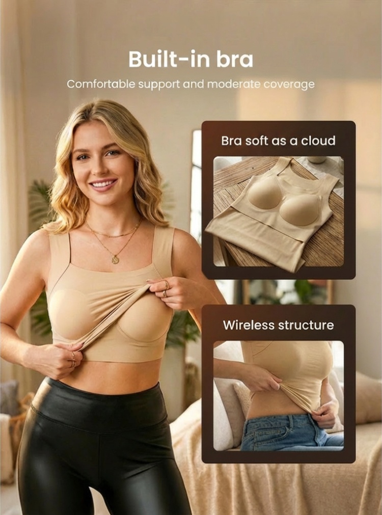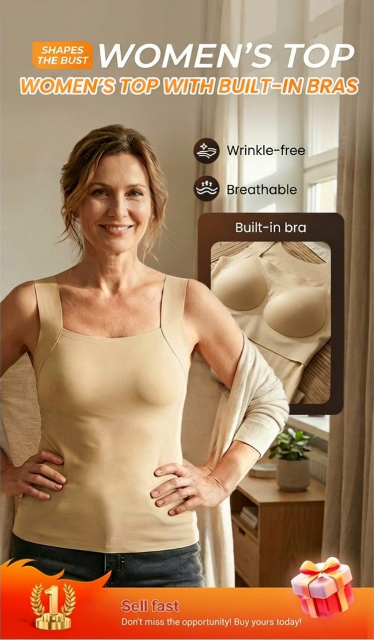 Last Day Special Price £12.99💐 Women’s U-Neck Tank Tops with Built-In Bra